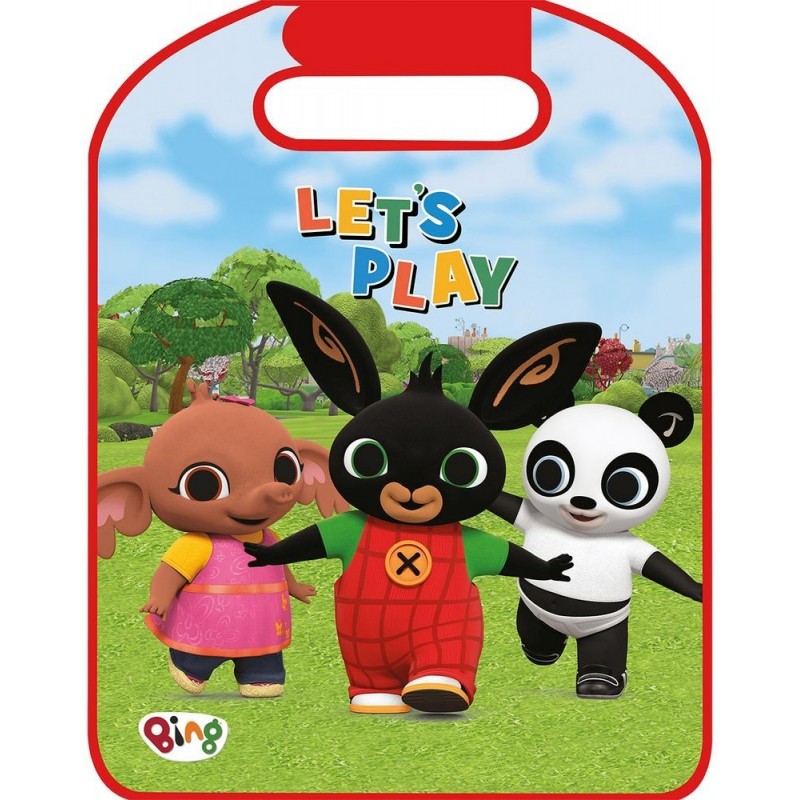 Se adapta a todos los coches y se fija fácilmente al reposacabezas con velcro Producto probado y certificado según la normativa europea. Medidas 45x56cm Fabricado en PVC duradero. Fácil de lavar. Personalizado con gráficos exclusivos siempre nuevos y llamativos, con el simpático conejito bing